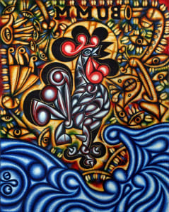 Luna was born in Cuba in Pinar Del Rio province in 1969. He studied painting in San Alejandro Fine Art Academy, the National School of Art, and the Higher Institute of Art. His work evidences a long-standing interest in the vernacular culture and oral literature associated with proverbs, sayings, and riddles, incorporating dense pencil scribbles into the painting’s surface as an extension of the temporality of text into the imaginary.