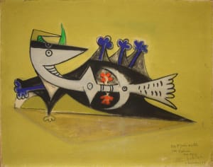 Upon his return to Cuba, Lam was inspired to create a series of works inspired by the plight of the Afro-Cuban population, and sought to preserve what he saw as a vanishing tradition through his art. His works from that time depicted figures, often part human and part animal, in African masks, and explored themes of voodooism and other traditional rituals. His compositions depicted violent and mystical environments, with linear, shifting forms in motion, set against monochrome backgrounds.